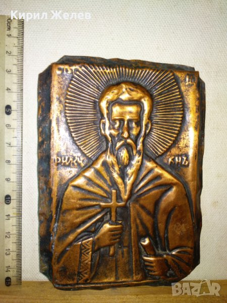 СТАРА МЕДНА ИКОНА СВЕТИ ЙОАН РИЛСКИ / ОБКОВ МАЙСТОРСКА ИЗРАБОТКА 41549
