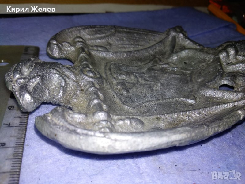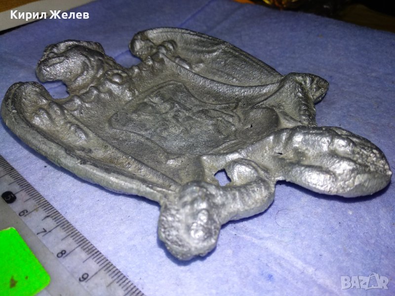 СТАРИНЕН ГОТИЧЕСКИ с РИЦАРСКИ ГЕРБ и ДРАКОН СРЕБРИСТ МЕТАЛЕН ПЕПЕЛНИК КОЛЕКЦИОНЕРСКА ЧИНИЙКА 41551