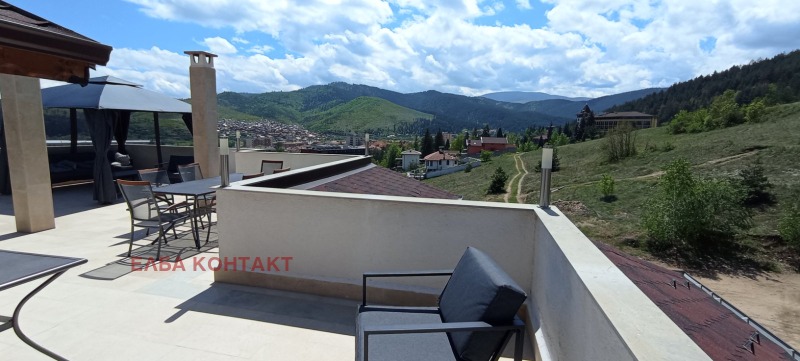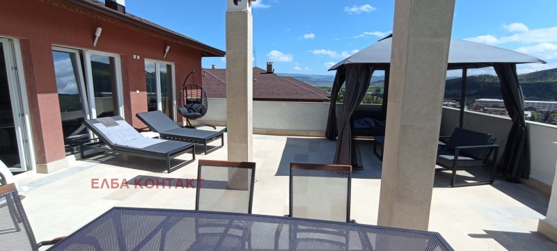 Пентхаус на покрива на многоетажна сграда със собствен вход през гараж и личен асансьор. Две спални, две бани, два хола, две кухни, огромна тераса с джакузи, покрит балкон и още една тераса към спалнята. Напълно обзаведен и готов за отдаване под наем на хотелски начала. Превъзходна гледка към града и гората и пряк достъп към път еката за Връх Острец и Вазова поляна. Прекрасно място, което може да излекува душата.