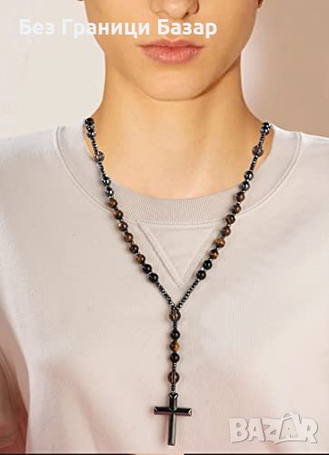 Ново Тройна Защита: Колие с Кръст от Тигрово Око, Хематит