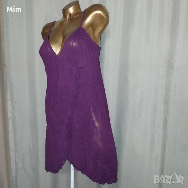 Нощница от двоен еластичен тюл с къдри отпред ,регулируеми презрамки,подгръдна от 45 до 55 см едностранно , дължина от подмишници 75 см .Няма забележки.