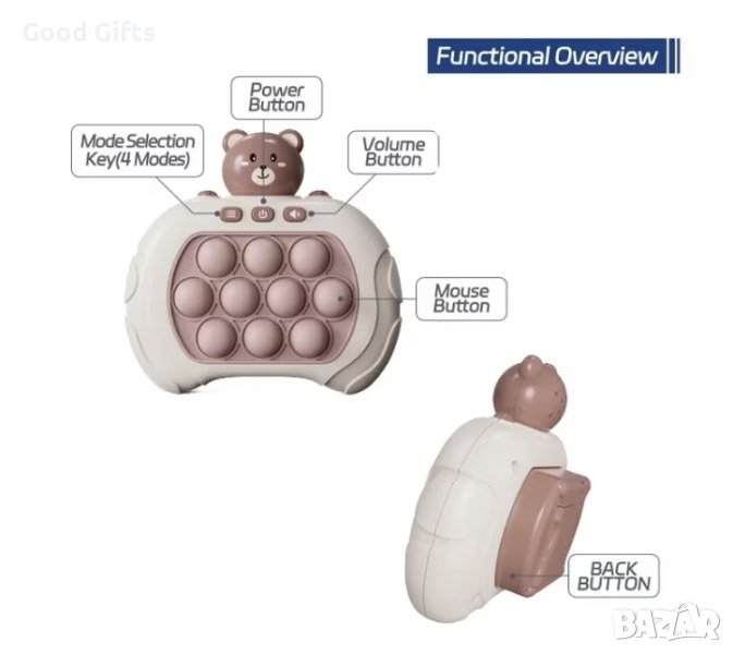 С автоматичната си функция, тази игра добавя още едно ниво на забавление. Децата могат да наслаждават на удовлетворителното чувство от натискане на мехурчета и в същото време да развиват координацията на око-ръка, фината моторика и способността за концентрация.