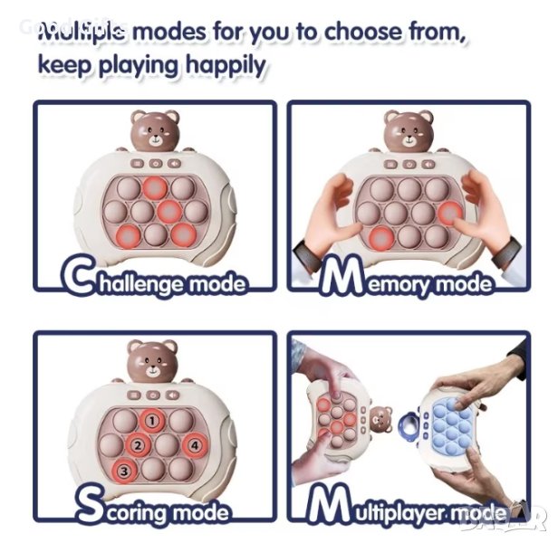 Подарете на вашите деца увлекателна и образователна играчка с новата електронна игра Pop It. Тя не само предоставя забавление, но и развива уменията на децата в безопасна и интерактивна среда, избягвайки прекомерното излагане на електронни екрани.