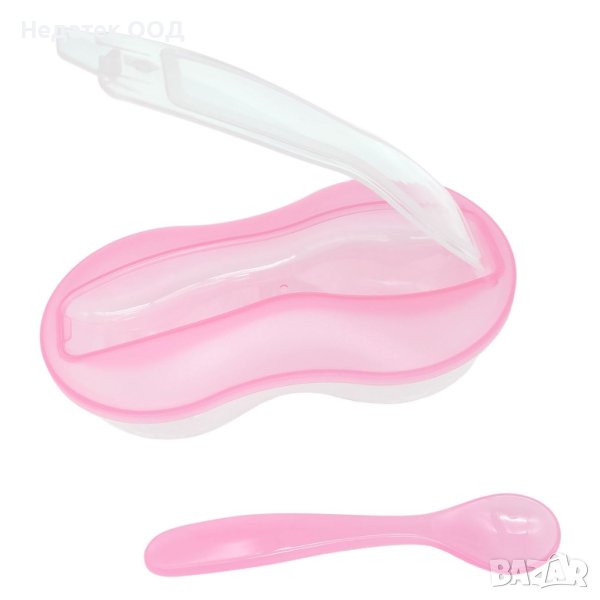 Купа за бебешка храна, прозрачна с розов капак и поставка за лъжичка.Комплектът е специално създаден, за да улесни процеса на хранене на бебето.Лесно се държи и е идеален за пасиране на бебешка храна.Всички части на продукта са изработени от нетоксична полипропиленова пластмаса, материал без BPA, фталати и PVC.