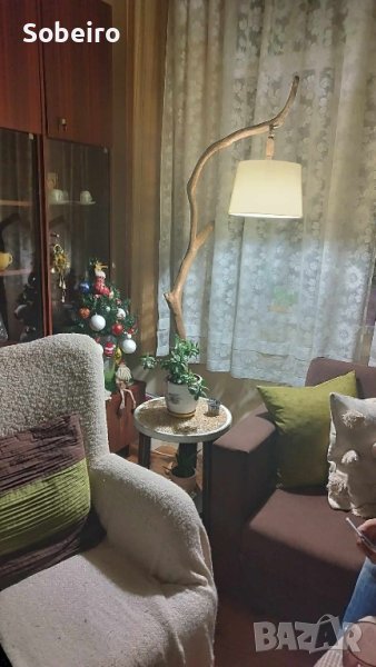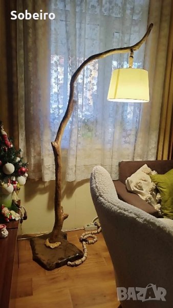 Ръчно изработена. Ствола е от акация, поставката от орех. Крушката е LED, E27. Кабелът е вкопан в дървото. Изключително красиво изделие.