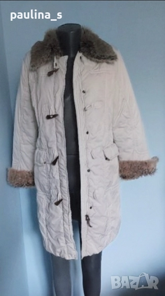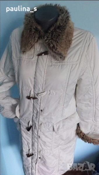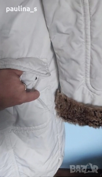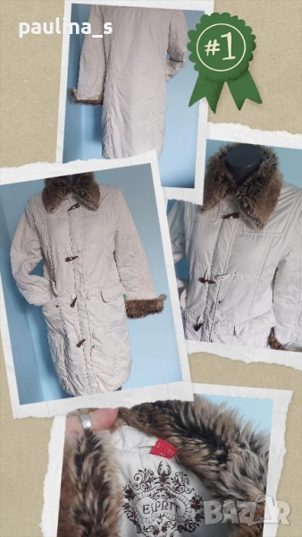 2️⃣. Колаж / M / XL - "Esprit". Цената е крайна, без пазарлъци 59,99лв / 30 евро. Маркова бяла парка тип палто с кожени декорации на яката и ръкавите. Изработката е перфектна, без дефекти, моделът се вижда добре.