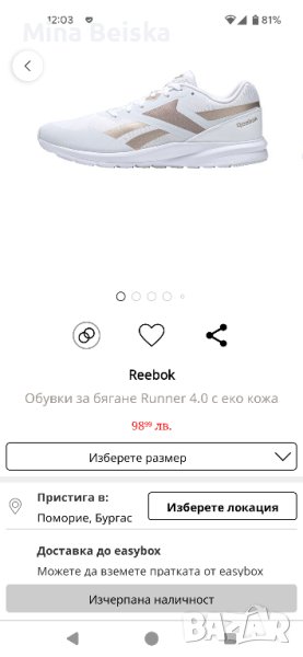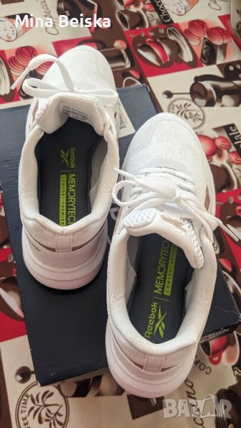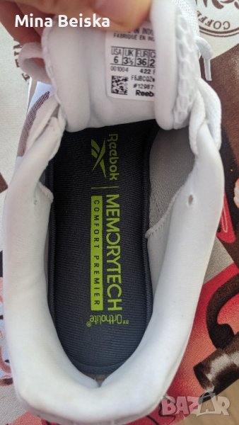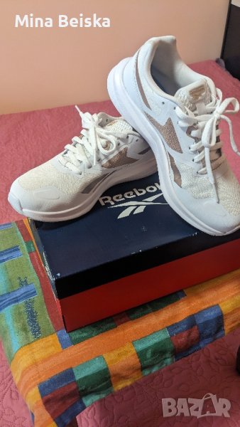 Снежно бели маратонки Reebok,обувани веднъж,много мека и удобна подметка, отговарят си на номера 36/стелка 23см.