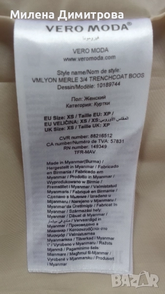 Дамски шлифер Vero Moda XS → Обява 43670522