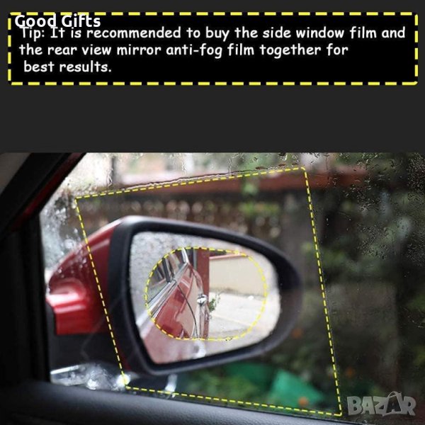 Залепено върху огледалата за обратно виждане на автомобила, водоустойчивата лепенка остава незабележима при хубаво време и остава с почти суха повърхност при дъжд и мъгла, улеснявайки шофирането при лоши метеорологични условия, особено вечер.