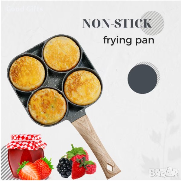 Незалепващ тиган с 4 отделения с дървена дръжка