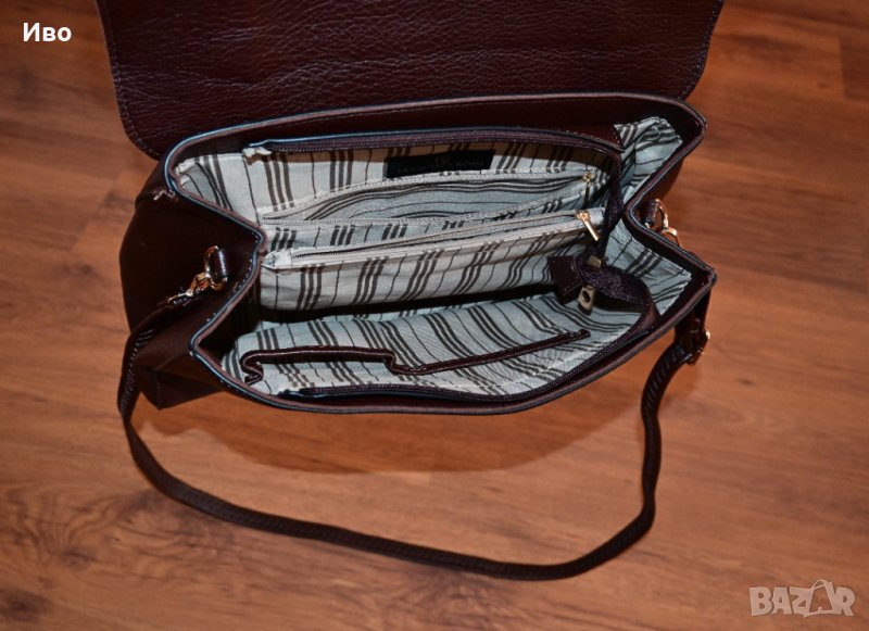 36 см., височина 25 см., с много отделения, две магнитни закопчалки. Къса и дълга дръжка. Етикета е отрязан, но е в чантата. Закупена от Fashion Days.