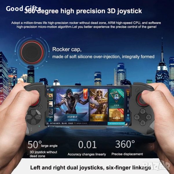 Този геймпад е лесен за настройка и използване. Просто го свържете с вашия телефон чрез Bluetooth и сте готови за игра. Батерията му е издръжлива, така че можете да се наслаждавате на дълги часове нон-стоп гейминг.