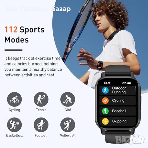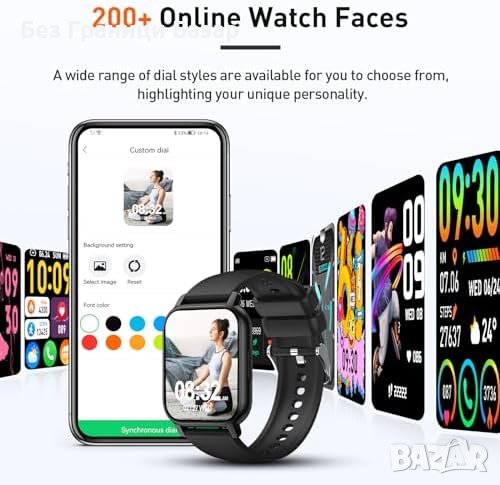 Нов Интелигентен Фитнес Часовник, 24/7 Здравен Монитор, IP68