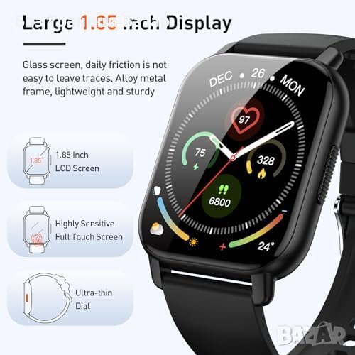 .Интелигентен часовник с 1.85" сензорен екран, черен