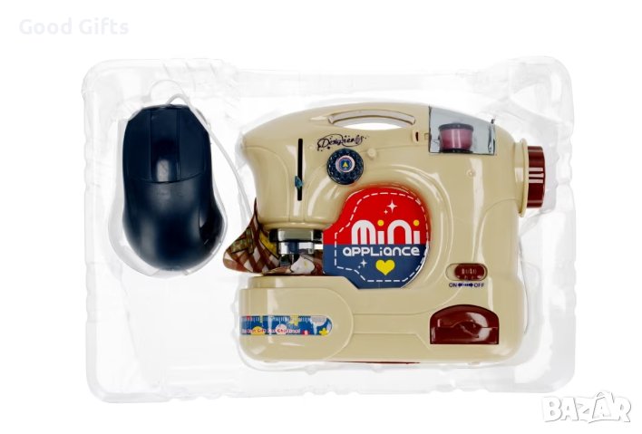 Продуктът е изработен от пластмаса, продуктът имитира истинска шевна машина.