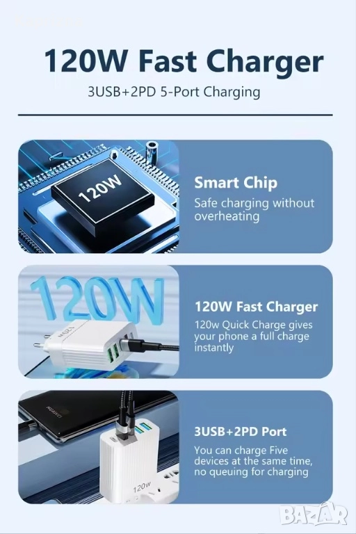 120w Мощно зарядно устройство → Обява 43675525