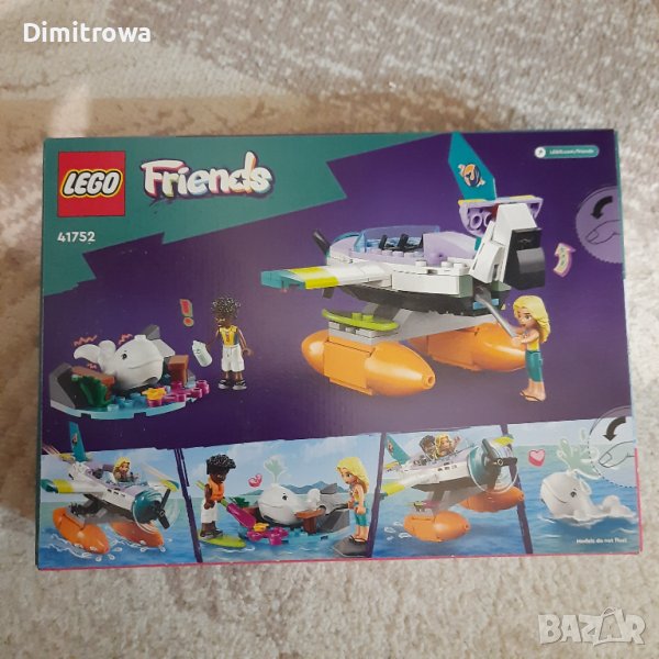 Децата, които обичат творческото разказване на истории, имат какво да открият в комплекта LEGO® Friends Спасителен морски самолет (41752) за възраст над 6 години. Комплектът се предлага с 2 миникукли, кит и много аксесоари. Децата могат да помогнат на Зак и неговия наставник да спасят хваната в капан белуга. Спасителният самолет за конструиране има 2 седалки и място за съхранение. Сцената на плажа включва дъската за гребане на Зак и части, които могат да се местят, така че децата да могат да освободят хванатия в капан кит. Стимулиране на забавлението Открийте лесно и интуитивно строително приключение с приложението LEGO Builder. Тук децата могат да мащабират и завъртат 3D модели, да записват комплекти и да проследяват напредъка си. Комплектът може да се комбинира с комплекти LEGO Friends 41736 и 41734 за още повече приключения за спасяване в океана (комплектите се продават отделно). Хартлейк Сити от следващо поколение Вдъхновете децата да развиват увлеченията си, докато изследват новия свят на LEGO® Friends с неговите разнообразни герои.
