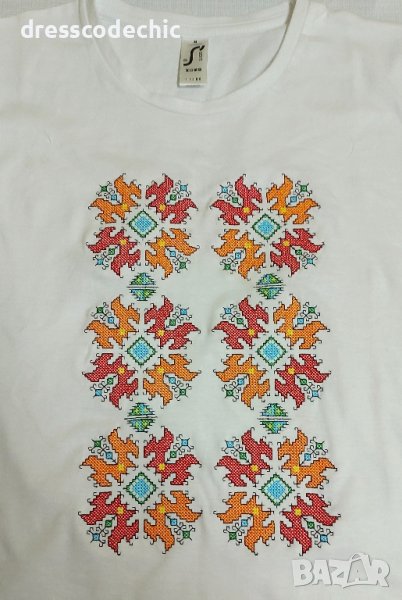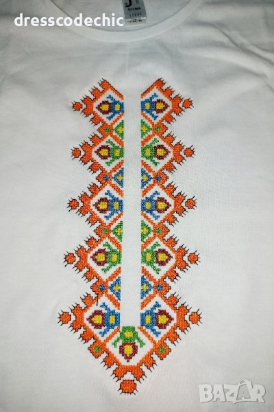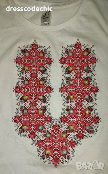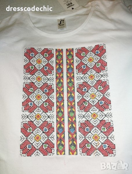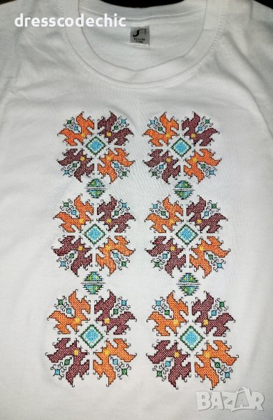 Здравейте! Тениски и блузи от органичен памук със БРОДИРАНИ шевици ;) Размери от S до ХХХL.Детски, дамски и мъжки. Ако нещо не е налично ще го изпълним до 3 дни.Цени от 30лв до 40лв според шевицата и блуза или тениска е?