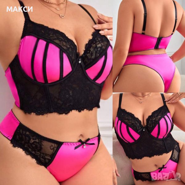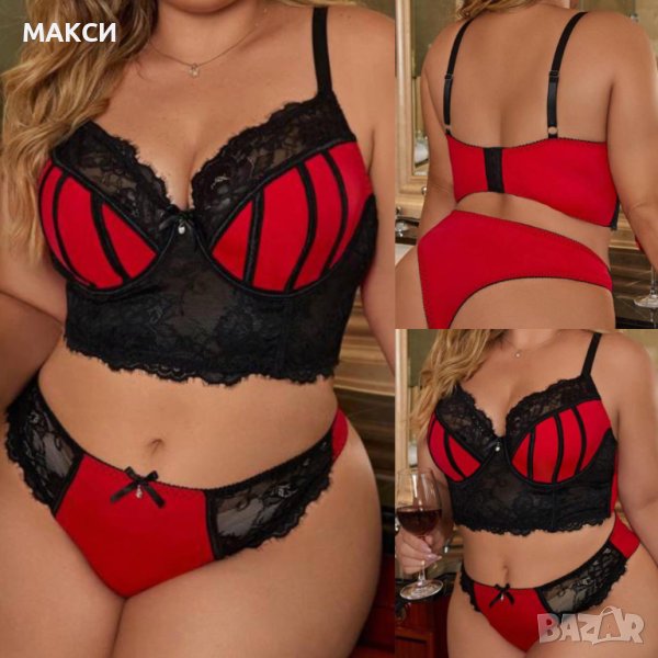 Макси еластичен секси комплект бельо с кор.се презрамки, банел и дантела