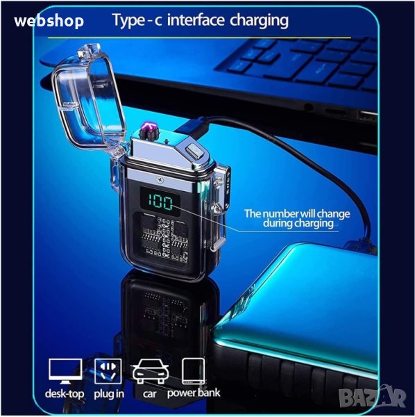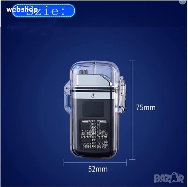 Елегантна прозрачна водоустойчива и ветроустойчива запалка, която е подходяща за употреба при всеки повод. Стилният дизайн се съчетава с нежни и наситени LED светлинки, които са и функционални, и елегантни. С ветроустойчив метод на запалване, за да работи и при силен вятър. Допълнително е водоустойчива, за да не се развали, ако се намокри. Стабилно и сигурно капаче, което служи като защитен механизъм. С опция за зареждане посредством Type-C кабел.