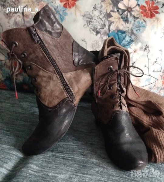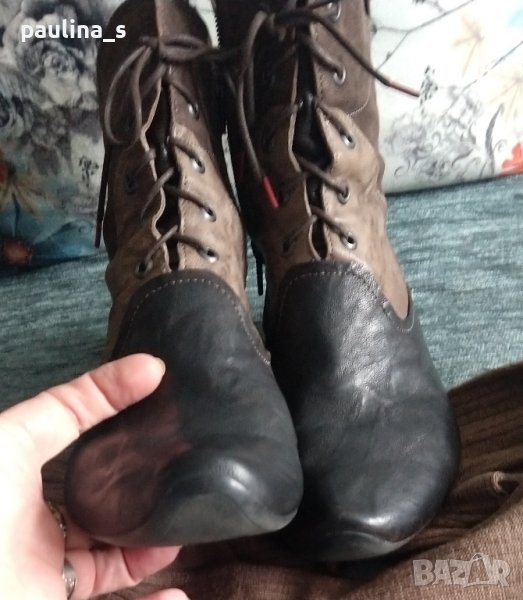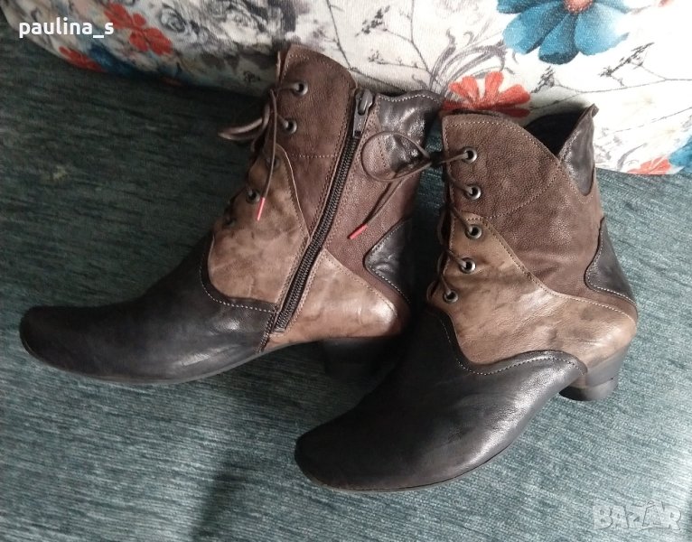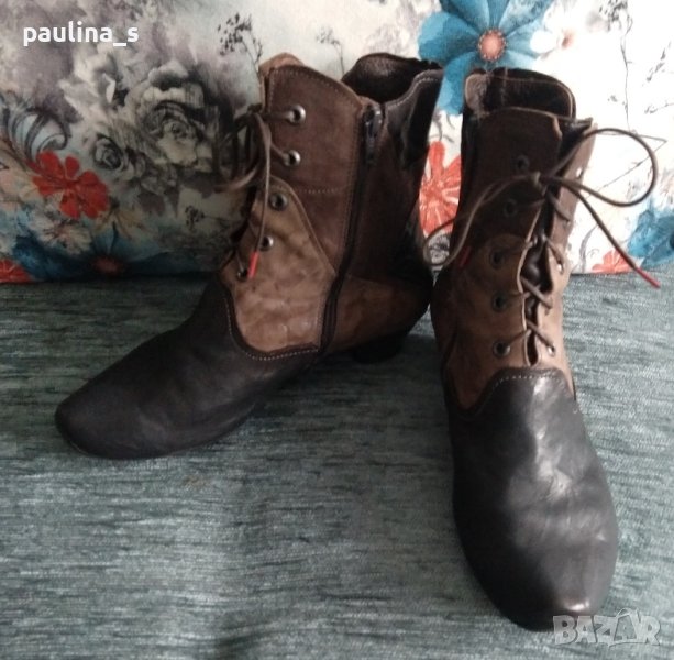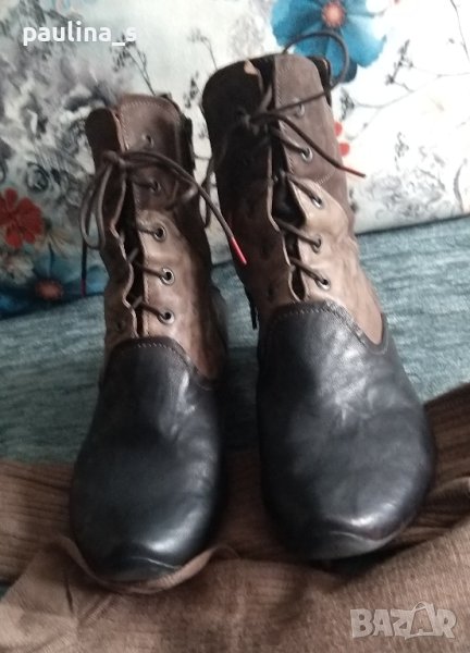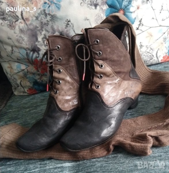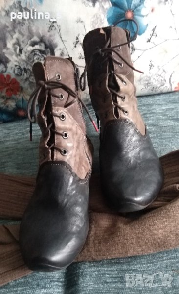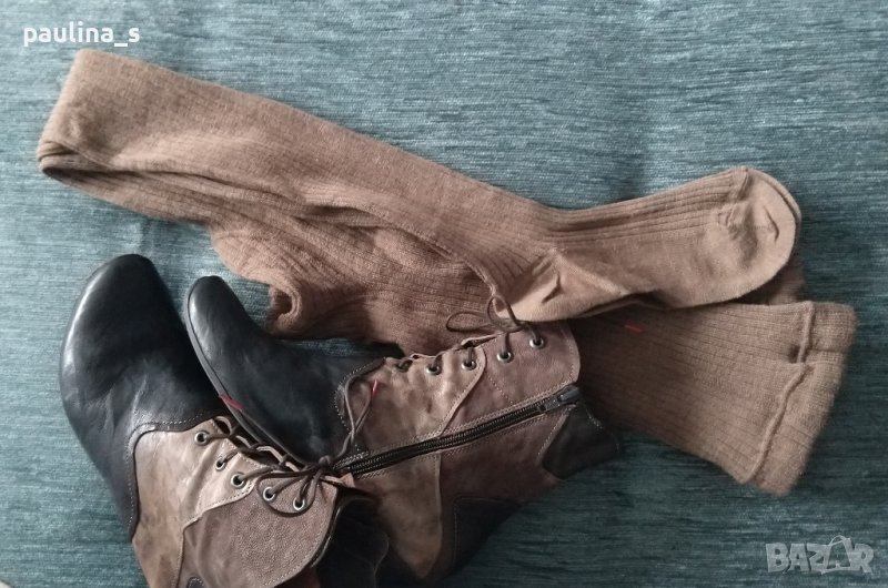 1. "Think" - Уникални маркови боти изцяло изработени от естествена кожа. Италианско производство, изключително прецизно и качествено. Подметката е от гьон, орнаментирана, токчето определя стила. Кожата е в Армани стайл - фабрично намачкана. Закопчават се с цип отстрани, връзките отпред освежават и унифицират модела с индивидуална ширина около глезена. Обувани са за повод, но са без дефекти, в перфектен вид. Номер 37 са, но може да се носят и от 36,5. Стелка 25см - издължена е поради модела / токче 3см / 17см височина. Чорапогашникът в подходящ цвят, е нов от вълна и полиамид, размер от М до ХЛ, цена 14,99лв - към ботите, не се делят. Моля, разгледайте и другите обяви и последвайте профила. При покупка за над 170лв, поемам част от доставката до офис на Еконт или правя отстъпка от общата цена, така цената за доставката не изглежда твърде непосилна. Приятно разглеждане. Продажбата е с благотворителна цел, цената не се коментира. Благодаря за вниманието и отделеното време 🙂