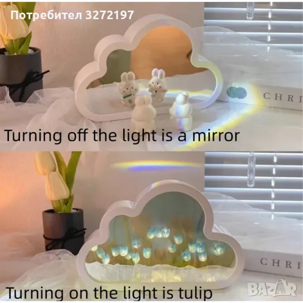 • Когато светлината е изключена, тя функционира като огледало: Този продукт служи и като огледало, което го прави универсално допълнение към всяка стая.