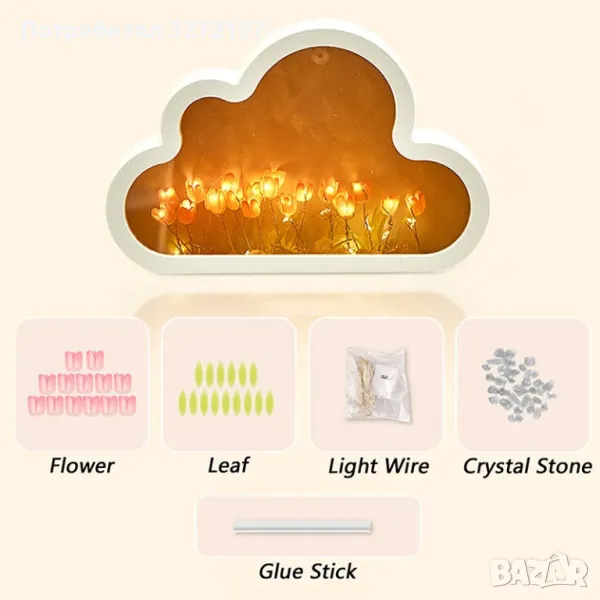 • Направи си сам облачно лале LED нощна лампа: Създайте уникална и персонализирана нощна лампа с този Направи си сам облачно лале LED комплект.