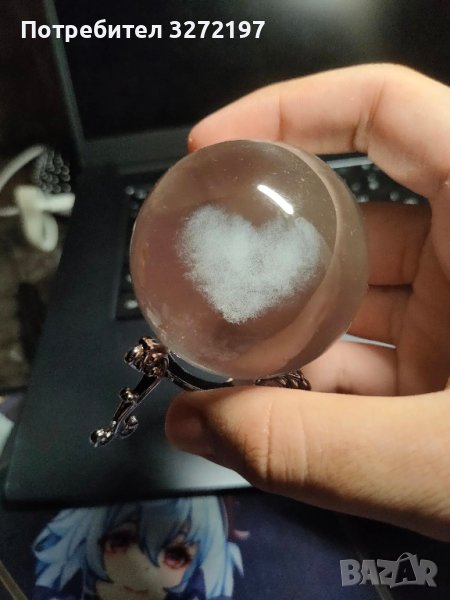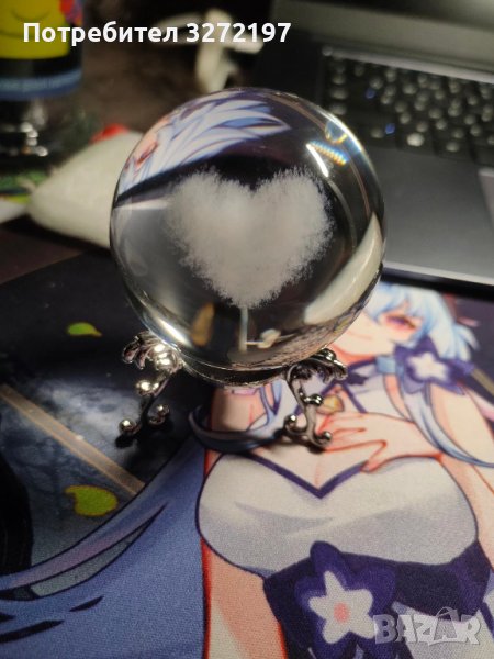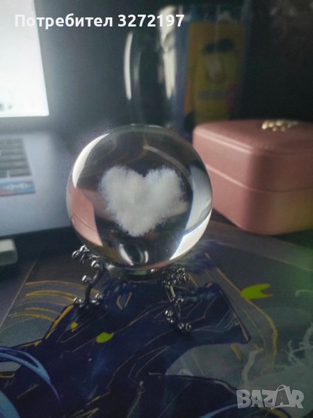 3D Прозрачен орнамент сърце в кристална топка 60 мм + стойка ор