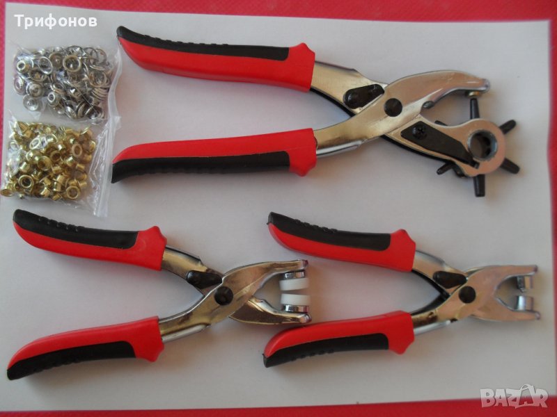 1 бр Револверни клещи (замби)-за пробиване на отвори (дупки) в Плат, Филц, Кожа, Картон и др материали. Диаметърът на дупките е с размери 2-2.5-3-3.5- 4-4.5-5 мм.