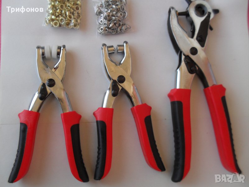 Цената на различните видове клещи от този комплект (револверни- замби, за капси или за тик-так копчета) по отделно, в магазините, е по 8-10 лв. броя. ЗА ПОСТАВЯНЕТО НА 1 БРОЙ ТИК-ТАК КОПЧЕ МАЙСТОРИТЕ ИСКАТ ПО 1.50- 2 лв.