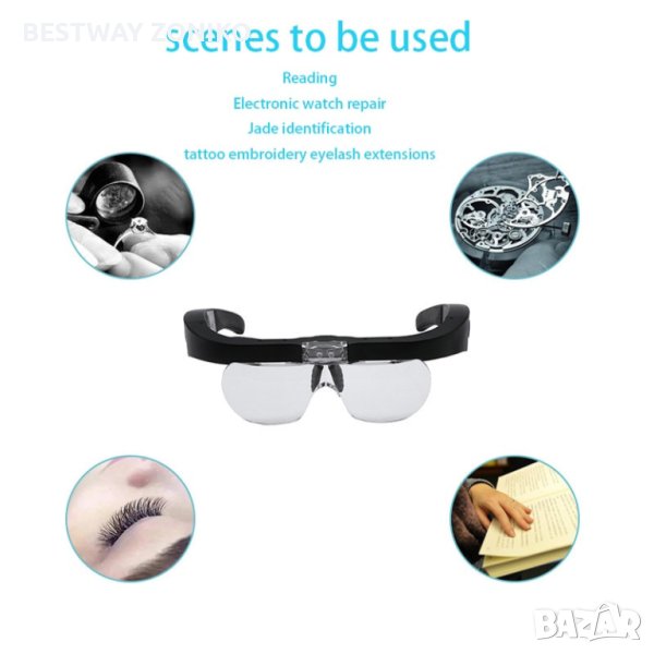 Лупа за глава очила тип "свободни ръце"силно LED осветление лампа с 4 различни различни увеличения