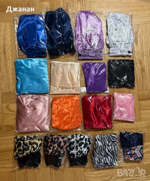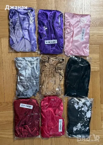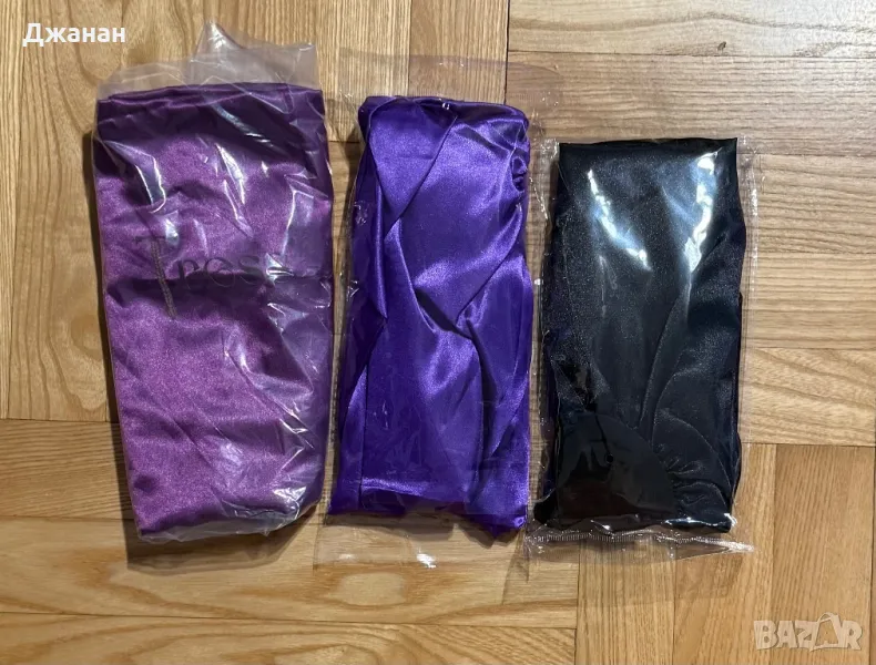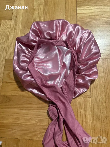 Сатенена шапка тип боне. Два модела са - единият модел е с връзки, а другият без. Цена - моделът без връзки е на цена 10лв, моделът с връзки е на цена 15лв, моделът за дълга коса без връзки е на цена 15лв. Една розова с връзки двойна подплата е на цена 20лв.