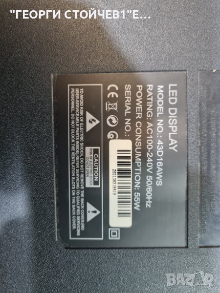 43D16AWS с гаранция 6м. TP.SK506.PB802 LMDS430D16C PT430CS03-3, снимка 1 - Части и Платки - 43685479 43D16AWS с гаранция 6м. TP.SK506.PB802 LMDS430D16C PT430CS03-3, снимка 2 - Части и Платки - 43685479 43D16AWS с гаранция 6м. TP.SK506.PB802 LMDS430D16C PT430CS03-3, снимка 3 - Части и Платки - 43685479 43D16AWS с гаранция 6м. TP.SK506.PB802 LMDS430D16C PT430CS03-3, снимка 4 - Части и Платки - 43685479 43D16AWS с гаранция 6м. TP.SK506.PB802 LMDS430D16C PT430CS03-3, снимка 5 - Части и Платки - 43685479 43D16AWS с гаранция 6м. TP.SK506.PB802 LMDS430D16C PT430CS03-3, снимка 6 - Части и Платки - 43685479 43D16AWS с гаранция 6м. TP.SK506.PB802 LMDS430D16C PT430CS03-3, снимка 7 - Части и Платки - 43685479 43D16AWS с гаранция 6м. TP.SK506.PB802 LMDS430D16C PT430CS03-3, снимка 8 - Части и Платки - 43685479 43D16AWS с гаранция 6м. TP.SK506.PB802 LMDS430D16C PT430CS03-3, снимка 9 - Части и Платки - 43685479 1/9