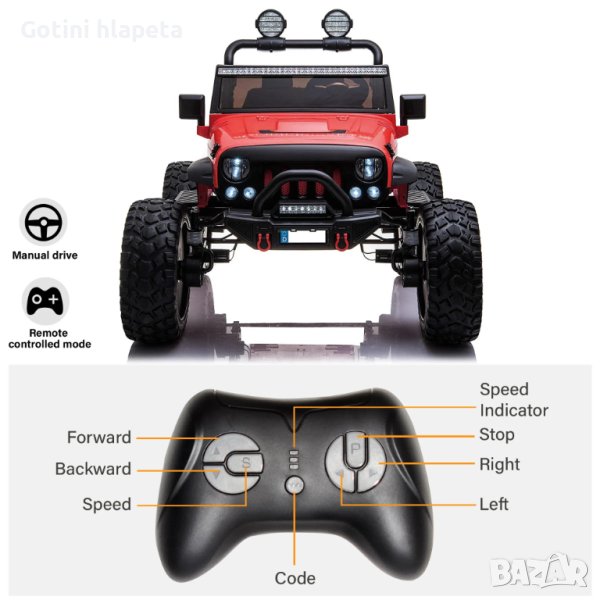 4х4 (четири двигателя т.е задвижват се и четиритe гуми.)
