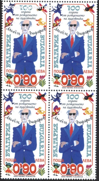 1. Чиста марка 100 години от Рожденето на Любен Зидаров художник 2023 от България. Тираж 5000. Цена 0,70 Евро (сн. 1)