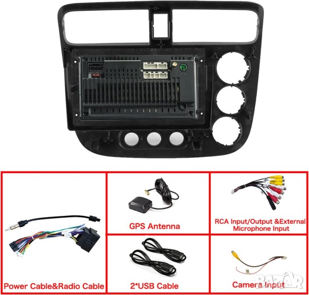 Пълен комплект с цялата рамка, преходни кабели и букси, декодери, предназначени и съвместими за монтиране на конкретния модел автомобил.