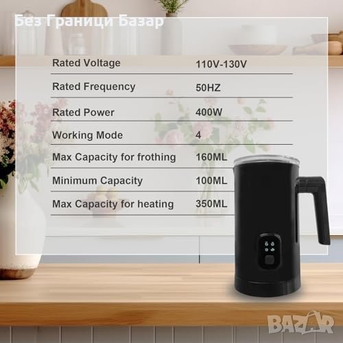 Функции: Автоматичен уред за пянене и загряване на мляко, 4 функции