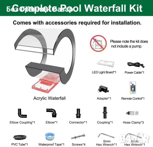 Нов Фонтан водопад с LED Осветление - Универсален за Басейни и Езера