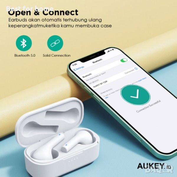Съвместимост: всички мобилни устройства с Bluetooth 5.0 или по-нов • В комплекта: - 1 x Aukey EP-T21 TWS In-Ear Bluetooth Earphones - 1 х кейс за съхранение и зареждане - 3 x чифта силиконови тапи (S/M/L) - 1 x microUSB кабел - 1 х ръководство