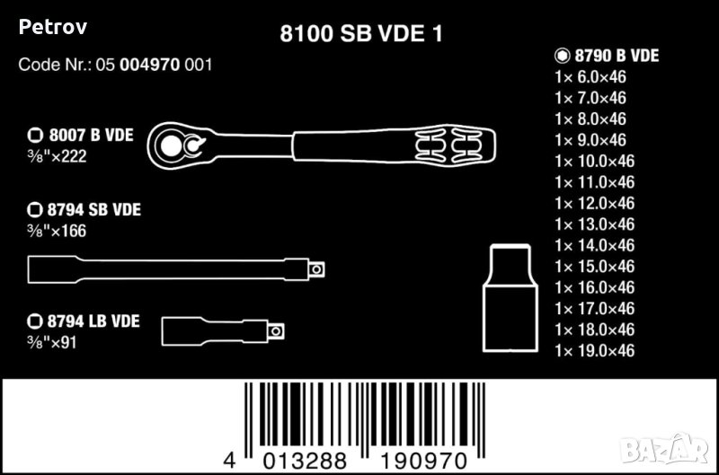Wera Zyklop 8100 SB VDE 1 - GERMANY - ЧИСТО НОВ Profi-Set 3/8" Комплект Гедория внос от Германия !!!