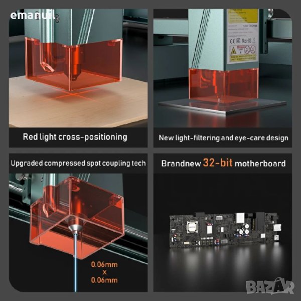 Контролери които могат управляват до 50W лазерен модул,автоматично управление на компресор Air assist през LightBurn,могат да управляват