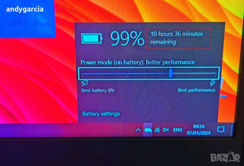 Батерията е в много добро здраве и кара до 5:00-6:00 реални часа в зависимост от натоварването.