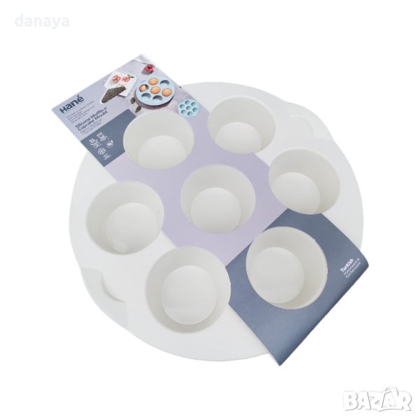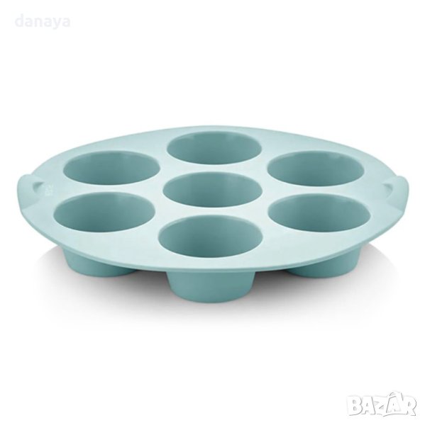 Силиконова кръгла форма със 7 гнезда. Силиконова форма за мъфини, соленки, пудинги и други вкусотии. Формата съдържа 7 гнезда. Подходяща за печене или замразяване. Издържа на темепература от -60 до 260 градуса. Незалепващо покритие. Тавичката е подходяща и за по-големи еър фрайери.