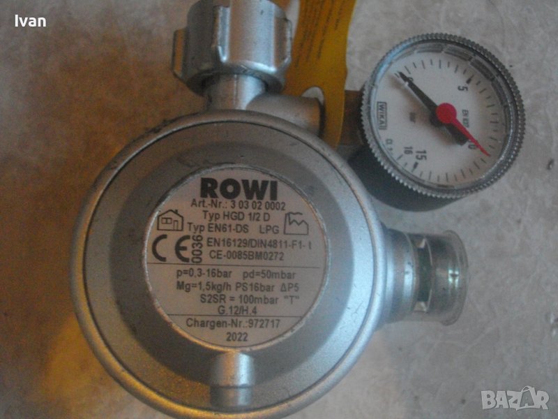 Цена на газов пропан-бутан редуцир вентил нов с етикет, без маркуч - 50 mbar-ROWI с манометър WIKA - 2022 г - цена 129 лв.НЕ Е НАЛИЧЕН.