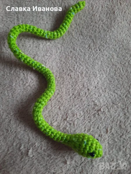 8. Змия 45 см от мека кадифена зелена прежда с подвижно тяло - символ на 2025 година по китайския хороскоп, Цена: 17.