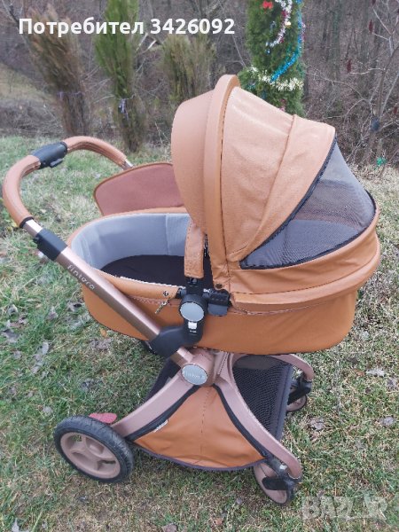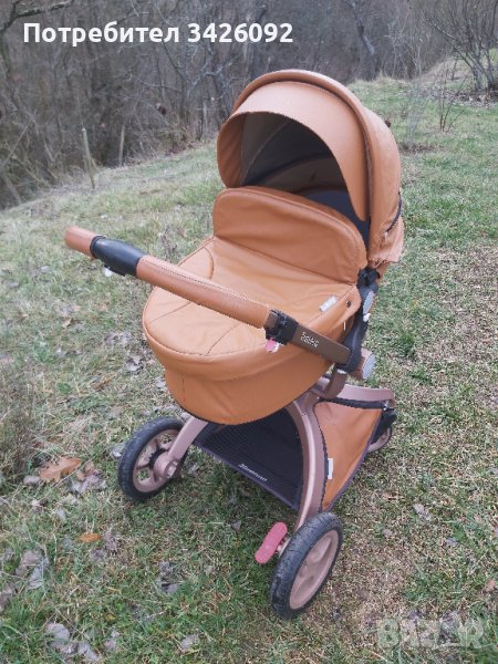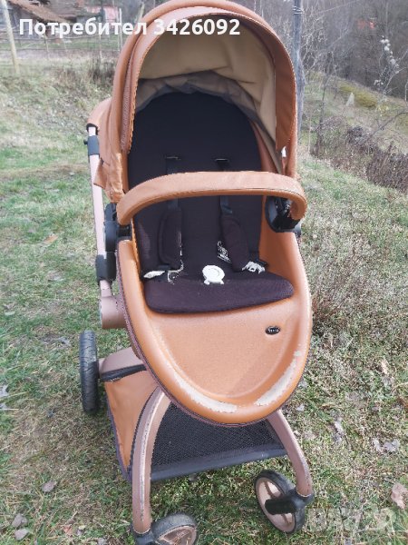 Детска количка Fintera, кожена е.Цвят кафяво,има само една забележка от обувките на детето летния кош е обучение! Чисто нова е купена и след употреба се получава това ожулване