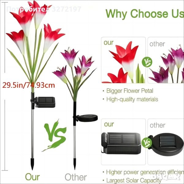 Соларни градински светлини с цветни глави на лилия ,водоустойчиви