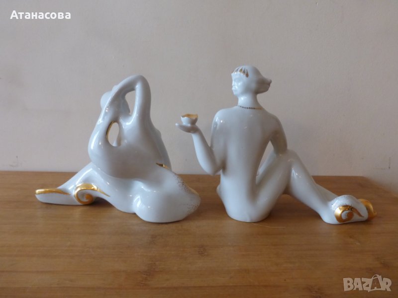 Стилизирани порцеланови фигури на мъж и жена, изобразяващи реките Псел и Ворскла, притоци на Днепър Производство Полтавски порцеланов завод, Полтава, Украйна през 70-те год, маркировки