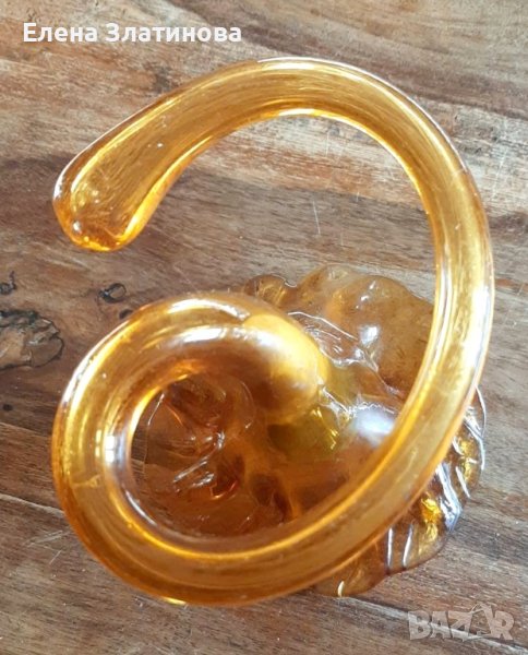 Свещник от муранско стъкло с характерния карамелен цвят. Представлява рог на изобилието, в горната си част украсена. Централната и долната част спираловидни