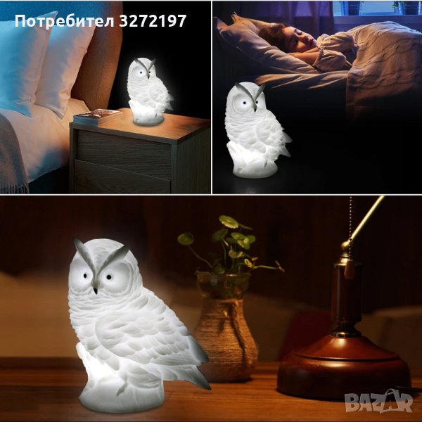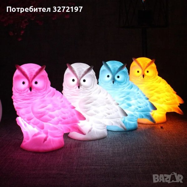 LED 3d нощна лампа бухал, винил,светлина различни цветове → Обява 43701844